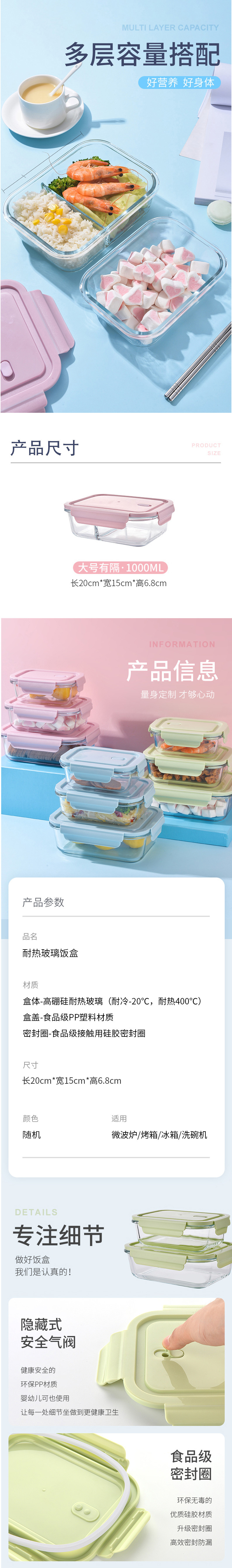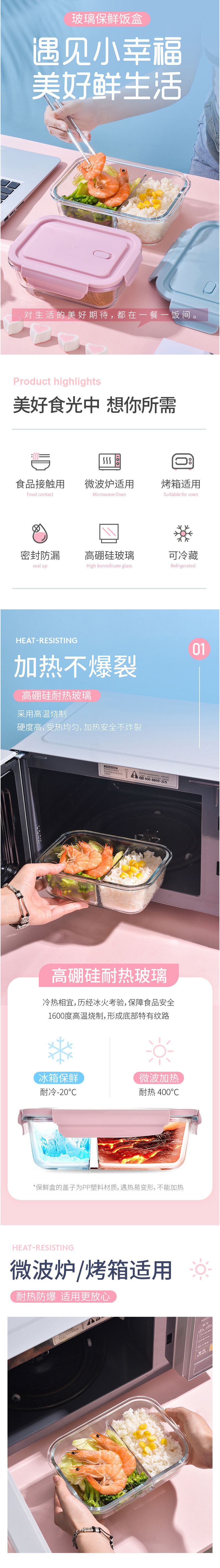[MY KITCHEN] 1000ml 2 Comp Double Heat Resistant Glass Microwavable Oven Safe Food Storage Container Lunch Box 双格玻璃保鲜盒