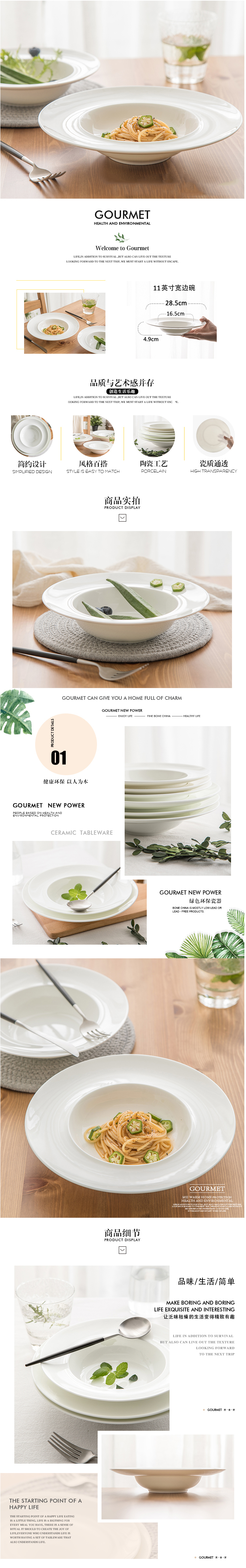 [MY KITCHEN] 11" White Porcelain Pasta Plate Western Style Minimalist Dinner