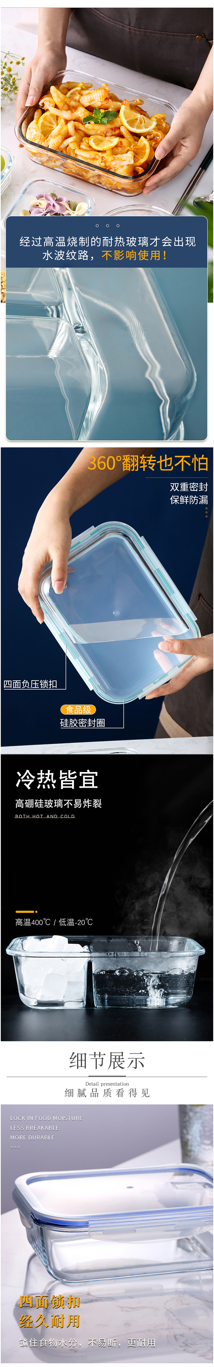 [MY KITCHEN] Heat Resistant High Borosilicate 2comp Glass Microwavable Oven Safe Food Storage Container Lunch Box with Locker No Leakage