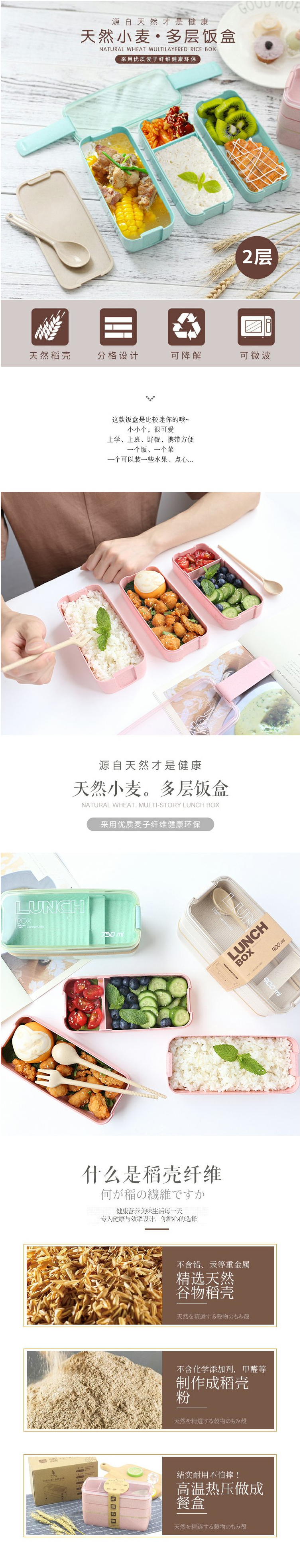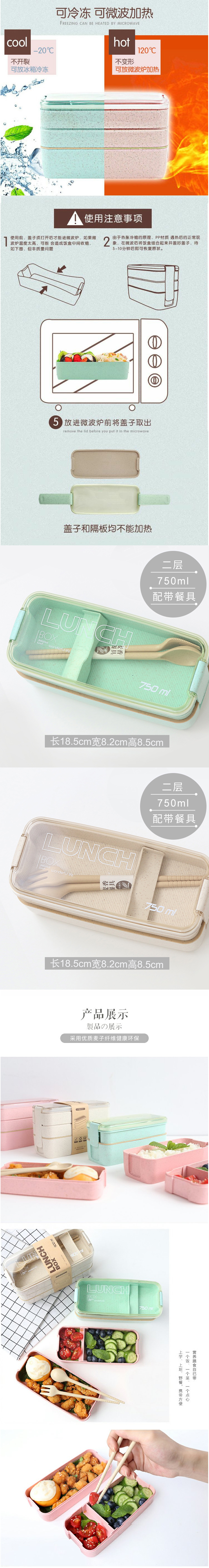 [MY KITCHEN] 2 Tier Wheat Straw 750ml Bento Lunch Box Container Microwavable with Free Spoon and Fork