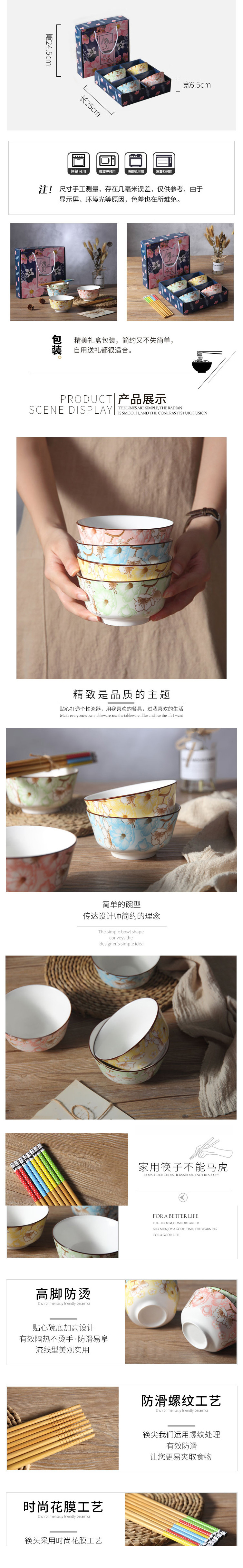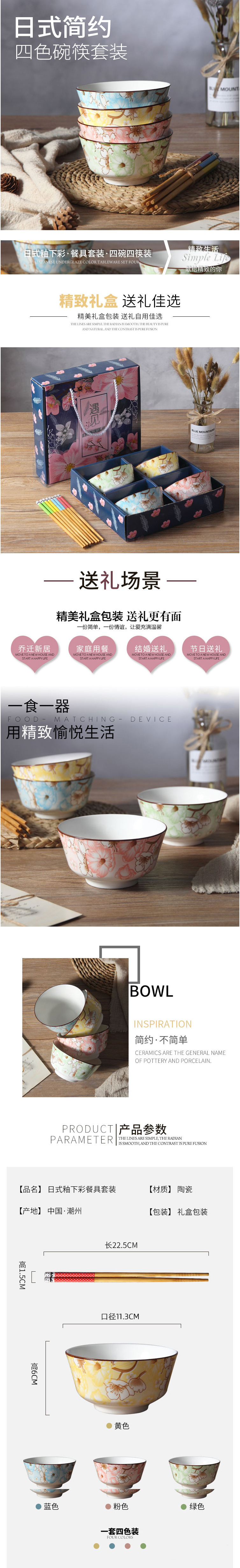 [MY KITCHEN] 4pcs Jasmine Porcelain Rice Bowl Gift Box set for 4 pax (Free 4 pairs Bamboo Chopsticks!)