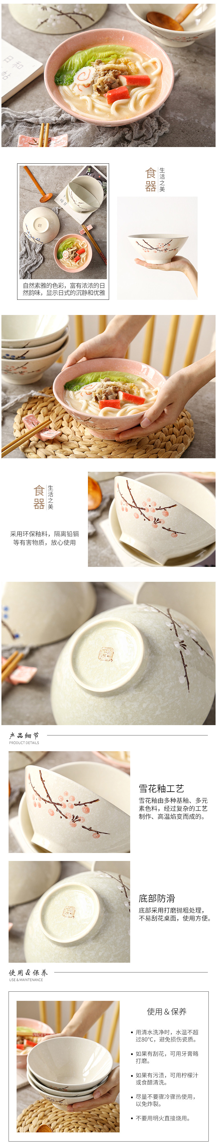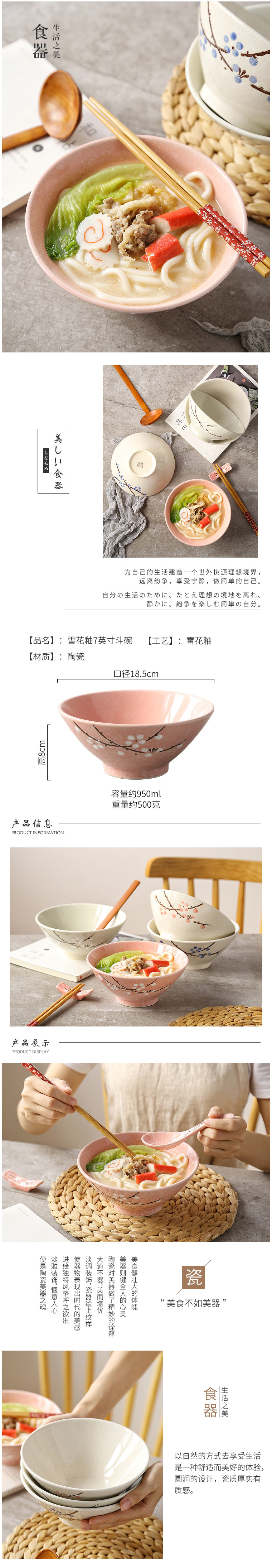 [MY KITCHEN] 7.5 inches Snow Flake Porcelain Bowl Japanese Style Round Soup Bowl Mee Serving Salad