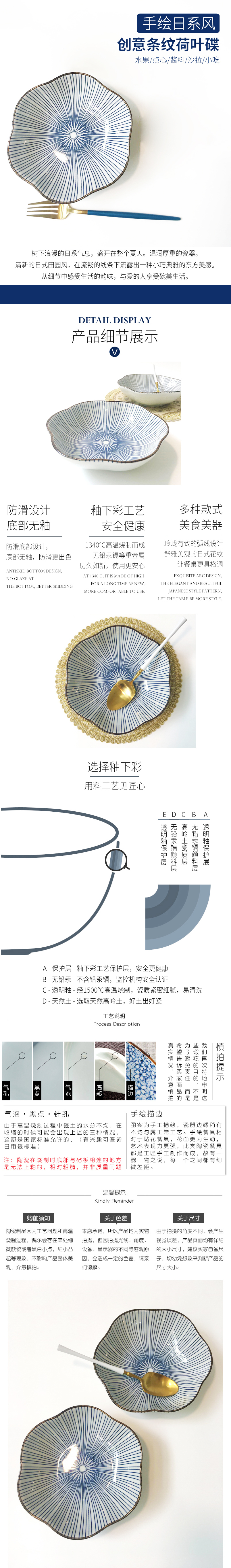 Model: Blue Stripe Pattern Japanese Style Flower Shape Porcelain Plate