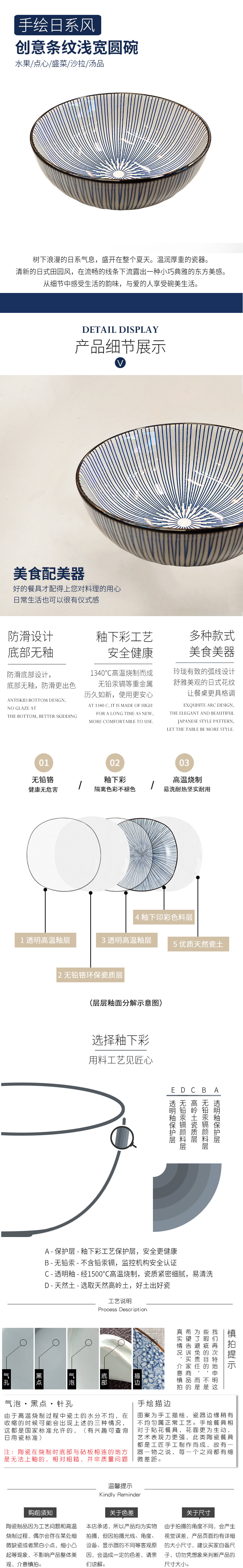 Model: Blue Stripe Pattern Japanese Style Porcelain Round Shape Wide Shallow Bowl