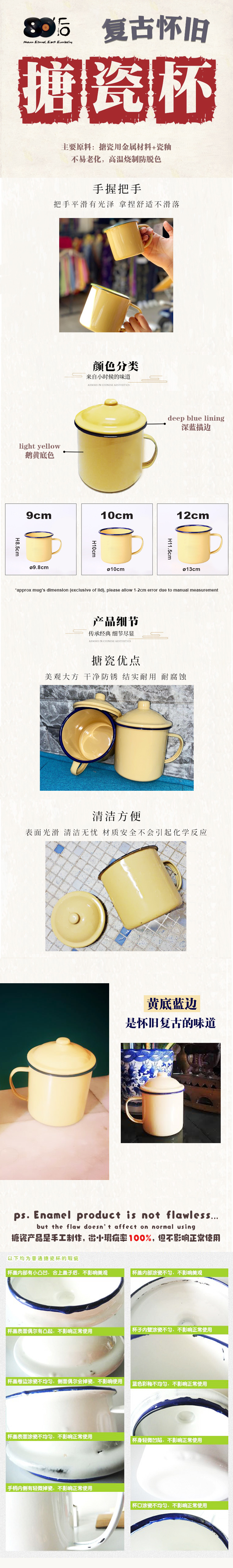 [MY KITCHEN] Enamel Mug with Handle with Lid Cover Simple Vintage Traditional Kole Air Ayan Penutup 9cm 10cm 12cm
