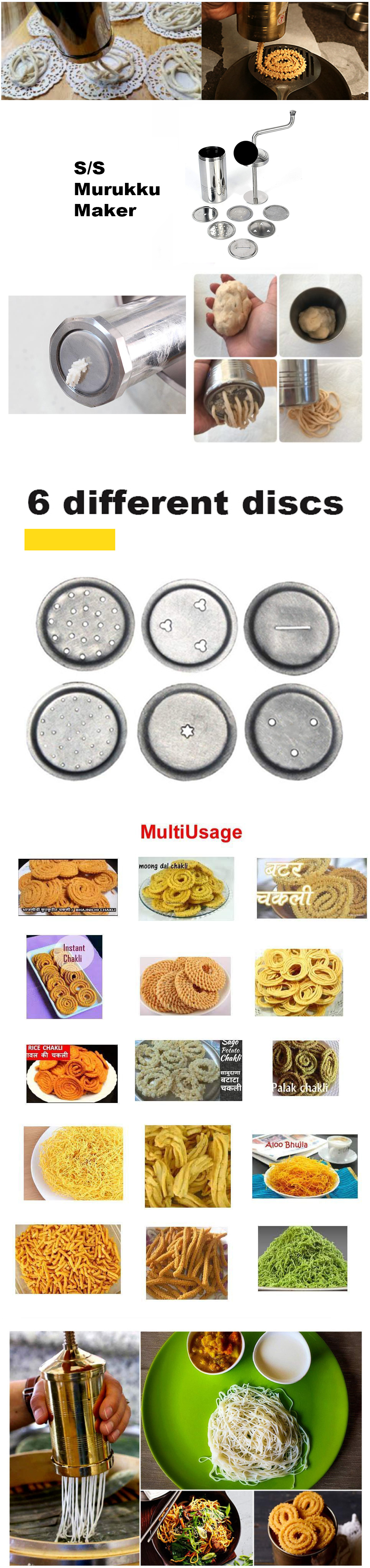 [MY KITCHEN] S/S Murukku Maker Acuan Muruku No.8 Putu Mayam 6 discs